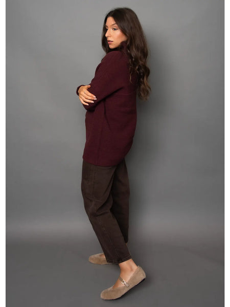 Ottoman Mock Neck Pullover - Burgundy