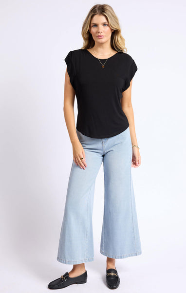 This top is a versatile must-have, perfect for transitioning from day to night. Its shirred knit material allows for lots of stretch, making it comfortable and stylish. A top that's both practical and chic? You've found it!