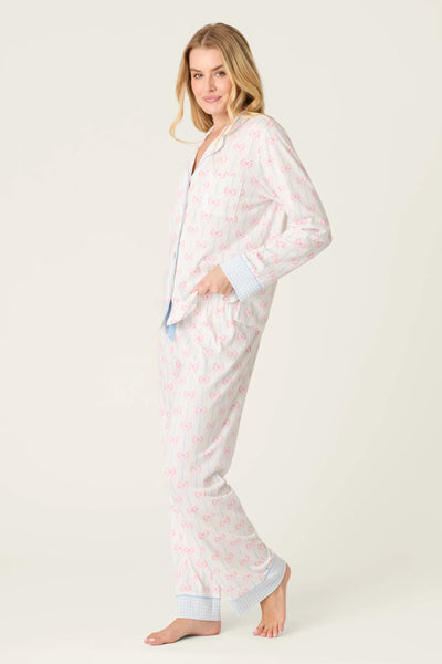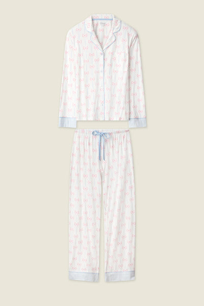 Soft, sweet, and made for unwinding, this bow-print pajama set brings a charming finish to nighttime routines.
